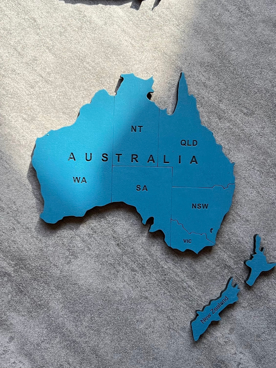 5. Start Attaching: The double tape is already attached to each piece. Start sticking the outer parts first, such as North America and Russia.