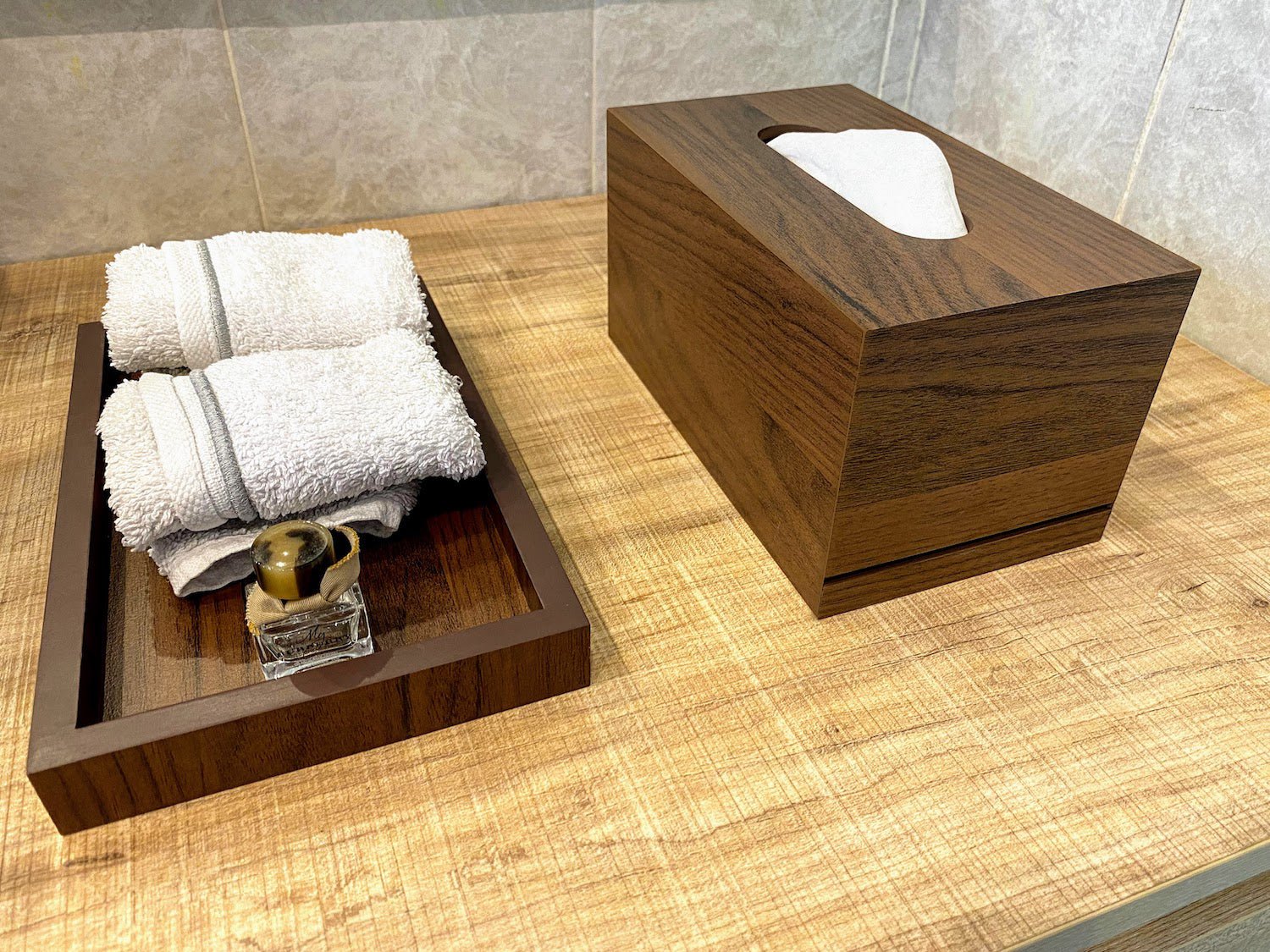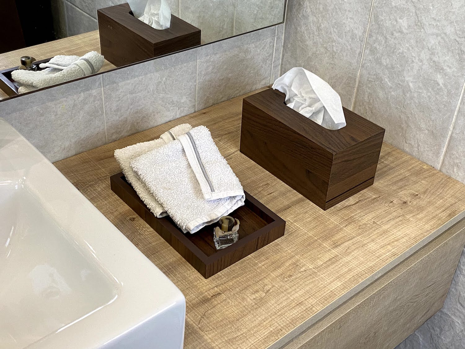 Wooden Bathroom Set (Tray - Trash - Tissue box)